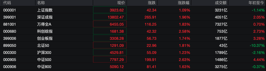 网财经讯 3月25日A股开盘后,三大指数捏续走强,沪指拉升涨逾1%,重回3900点上方;深成指涨1.86%,创业板指涨1.63%。有色金属、光纤、半导体芯片等主义涨幅居前,沪深京三市上升个股近4900只。